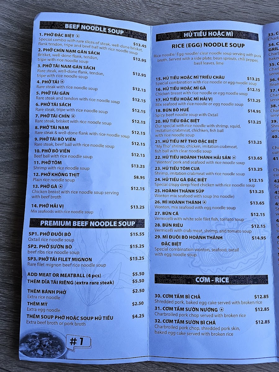 “ My first time eating here. Suppose it would’ve been really good. And the Pho itself was great. But we ate outside in the tent, and the bowl was a to go bowl, which was quite small for everything poured in together. Got messy. Again, the taste was great. The way we ate got quite messy. As far as the service goes, it was good. The guy behind the cash register was friendly. He let us stay a few minutes over 8 pm when he had said earlier that they would bring the tables in. When I went back in to get more sauce, he offered literally a handful. I needed just one of each (hot and soy sauce). As empty as it looked, (and don’t most of restaurants look like that near the closing hours nowadays?), I saw at least three parties come for pickups. It would be nice to go back and dine inside when things turn ‘normal.’ ”